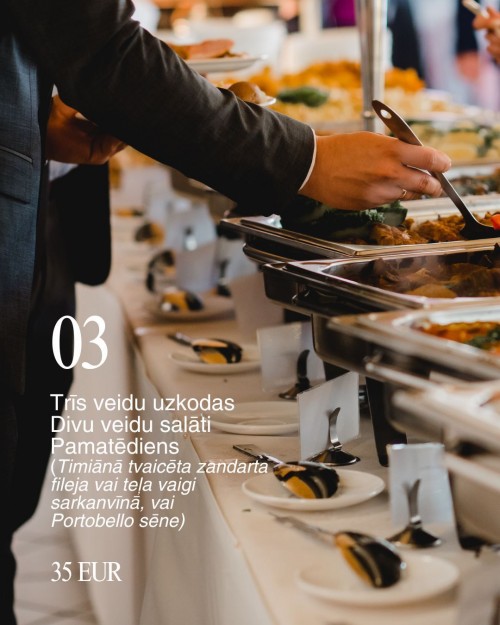 Un pamatēdienu – timiānā tvaicētu zandarta fileju vai teļa vaigus sarkanvīna marinādē, vai pildītu portabello sēni.